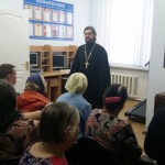 в которой рассказал о празднике, посвященному славянскому языку и провел беседу о воскресении Христовом, и смысле страданий в нашей жизни. В ходе встречи обсуждался вопрос, связанный с трудностями посещения храма слабовидящими и возможном разрешении этой ситуации. В заключении священник ответил на вопросы гостей.
